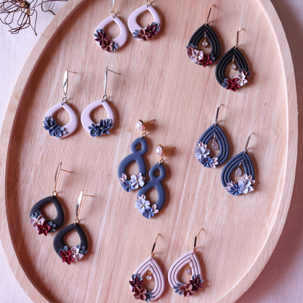 Orecchini pendenti leggerissimi realizzati in argilla polimerica.