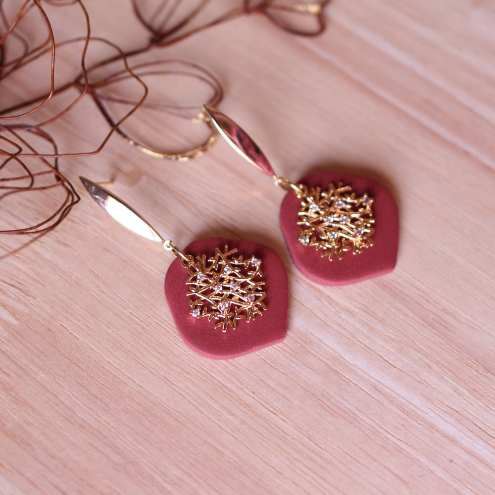 Orecchini pendenti leggerissimi realizzati in argilla polimerica.