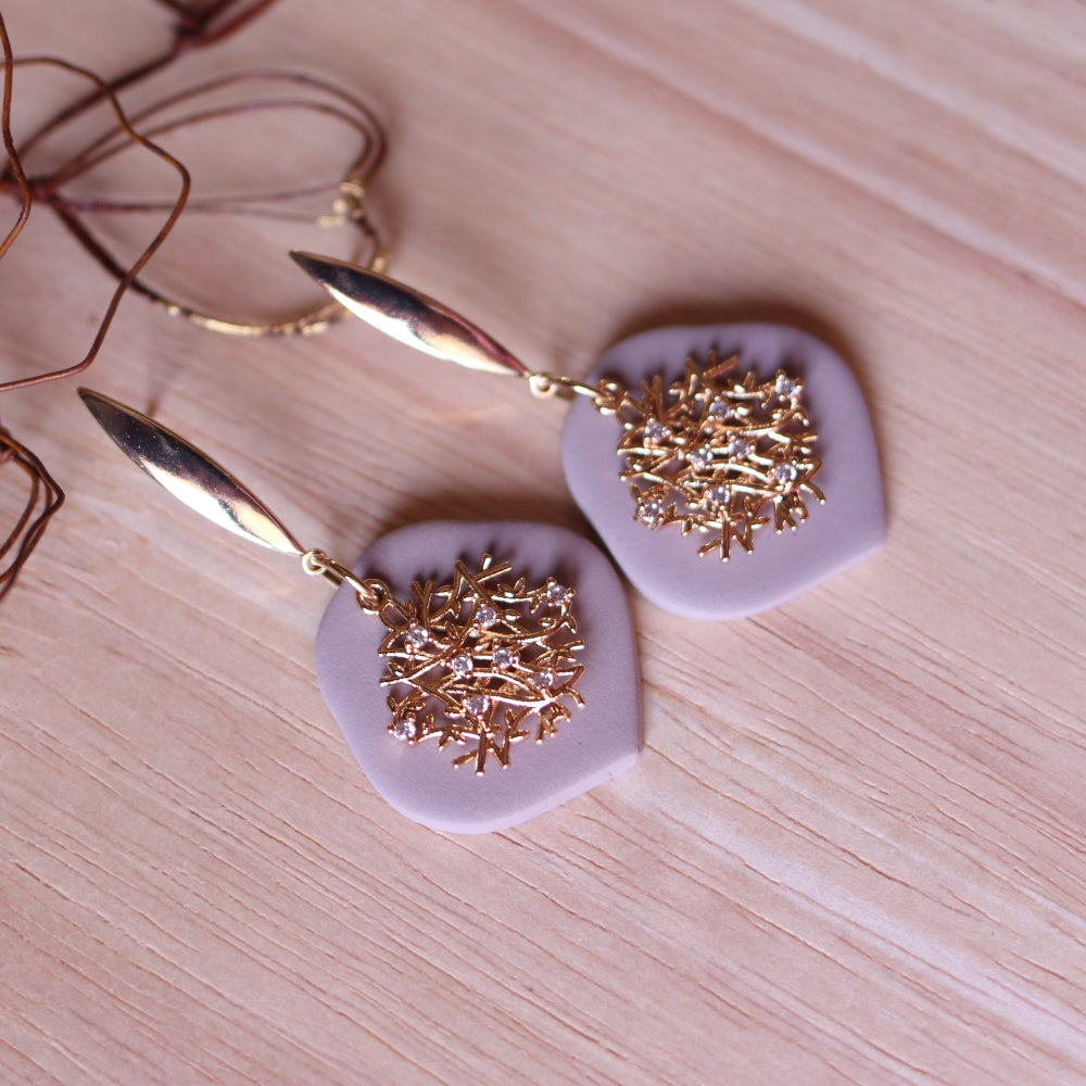 Orecchini pendenti leggerissimi realizzati in argilla polimerica.