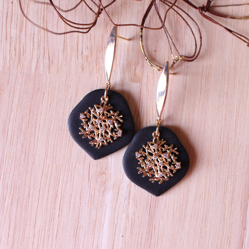Orecchini pendenti leggerissimi realizzati in argilla polimerica.