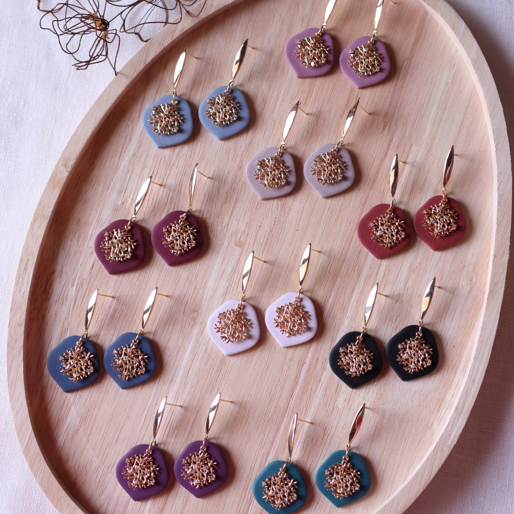 Orecchini pendenti leggerissimi realizzati in argilla polimerica.