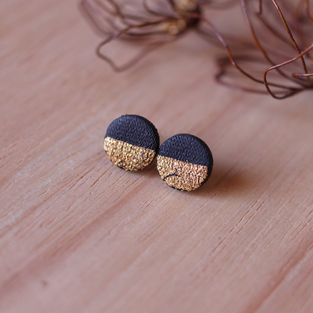 Orecchini Lobo Tondo Nero Oro