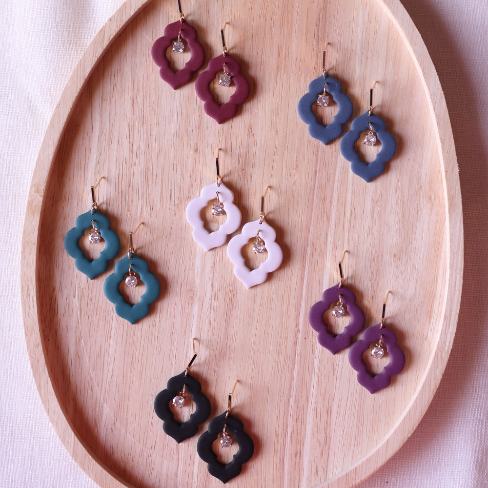 Orecchini pendenti leggerissimi realizzati in argilla polimerica.