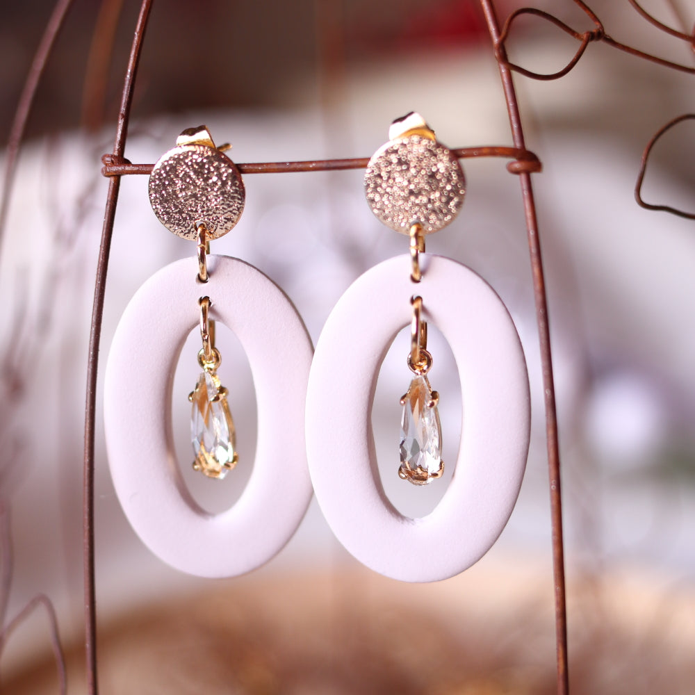 Orecchini pendenti leggerissimi realizzati in argilla polimerica.