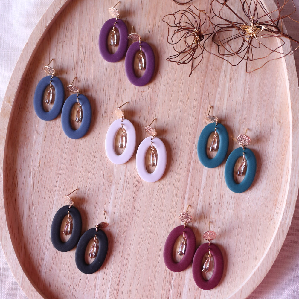 Orecchini pendenti leggerissimi realizzati in argilla polimerica.